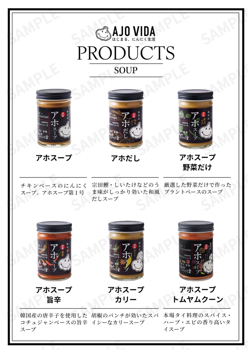 イベント展示パネル「AJO VIDA PRODUCTS – SOUP」(薬膳にんにく株式会社、デザイン、2026)