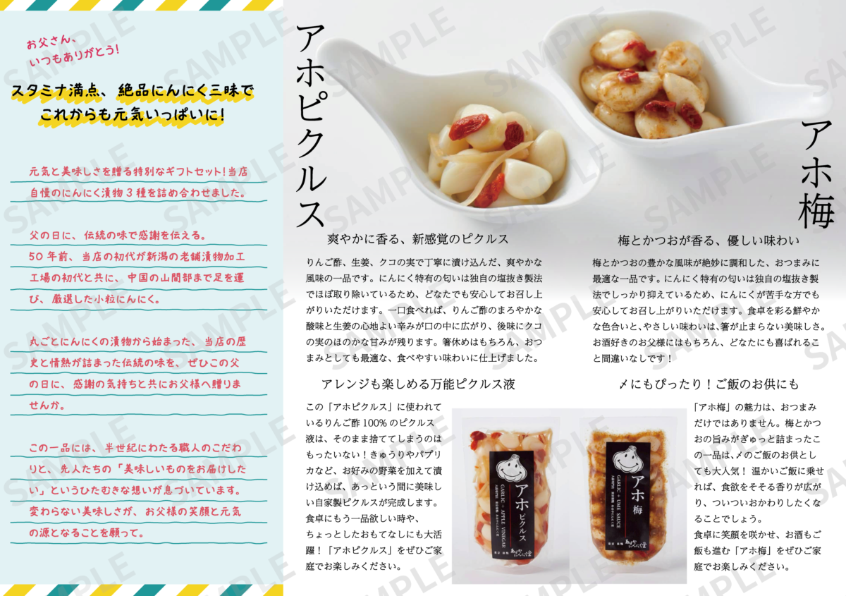 リーフレット「父の日ギフトセット」(薬膳にんにく株式会社、2025)