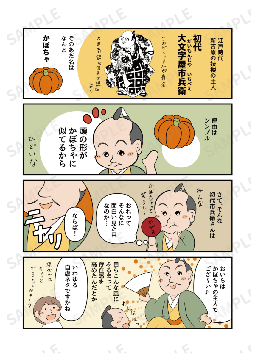 4コマ美術史「商魂たくましい新吉原妓楼の主人 -大文字屋市兵衛-」(個人作品、4コママンガ、2025)