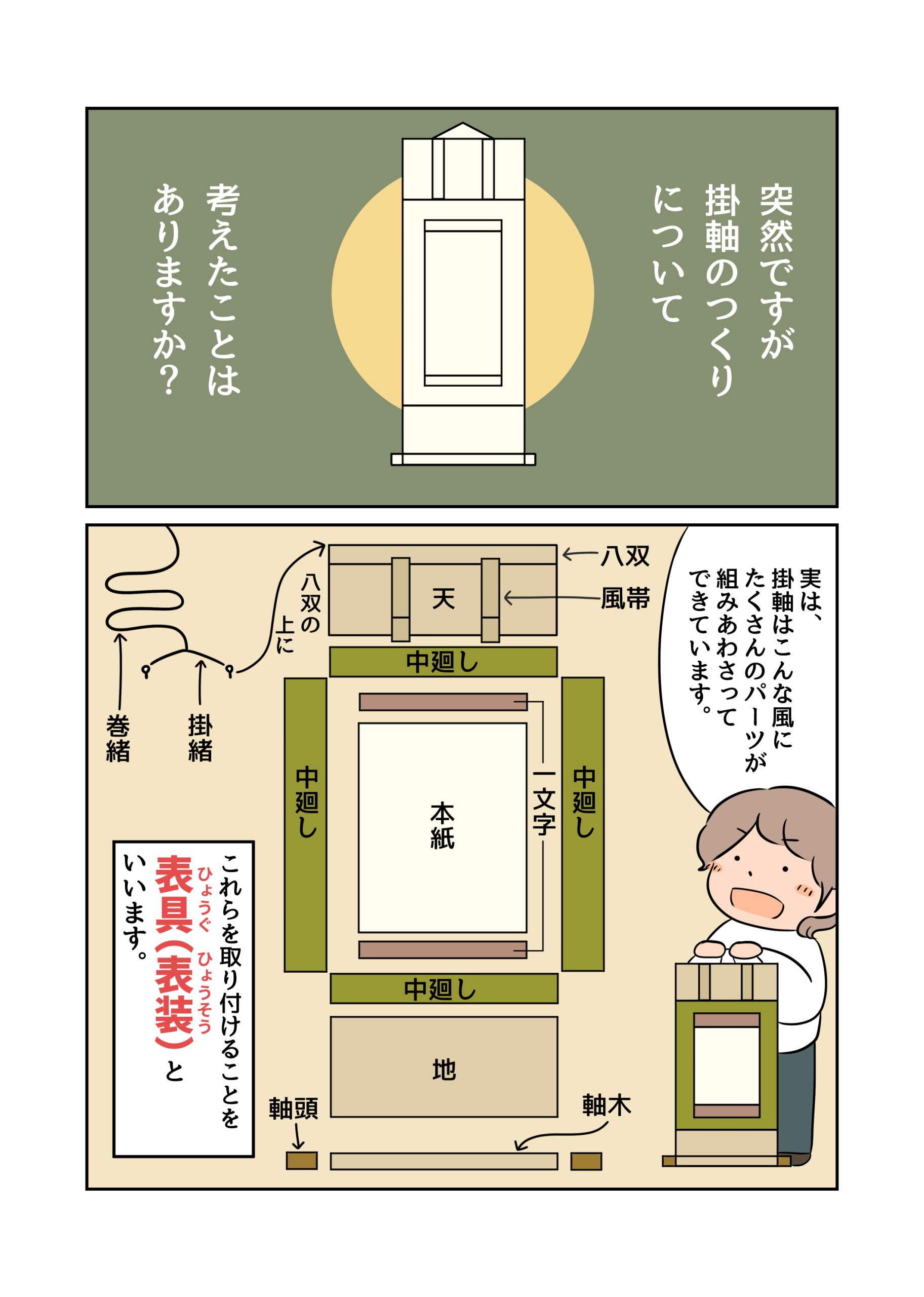 引き続き掛軸について。今回は、表具(ひょうぐ)の話。