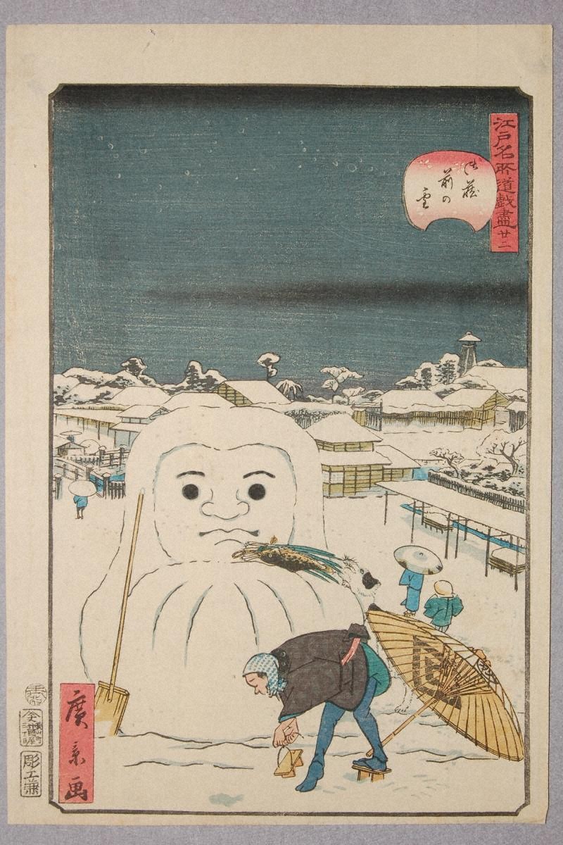 江戸時代の浮世絵に描かれた雪だるまについて紹介します。