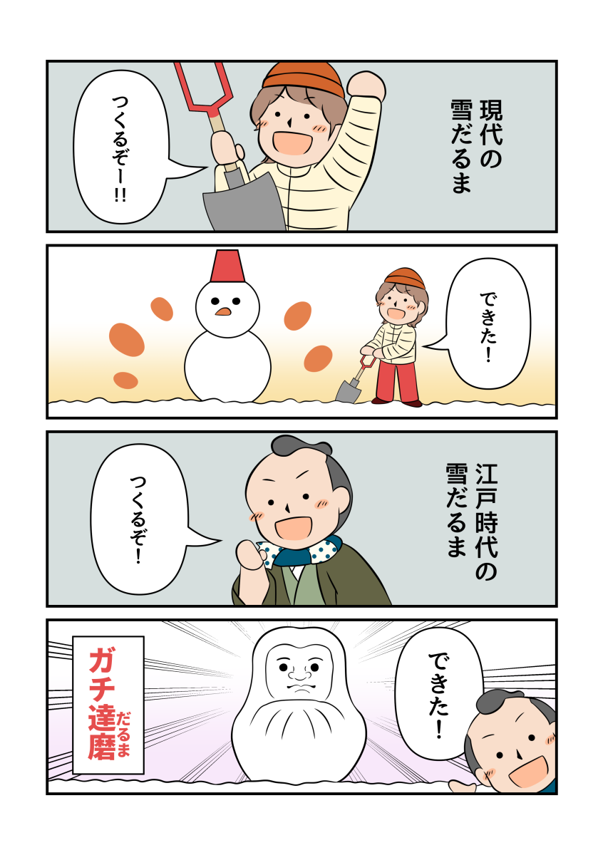 4コマ目の雪だるまが描かれている江戸時代の浮世絵はコチラ↓