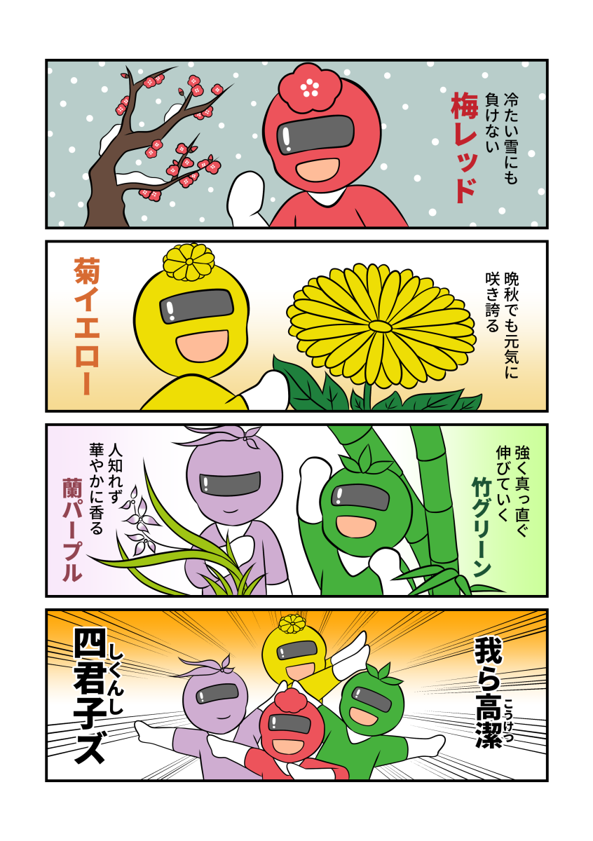 今回は、以前1コマ美術史で紹介した高潔な心をもつ四つの草木、四君子(しくんし)を4コママンガでご紹介!
