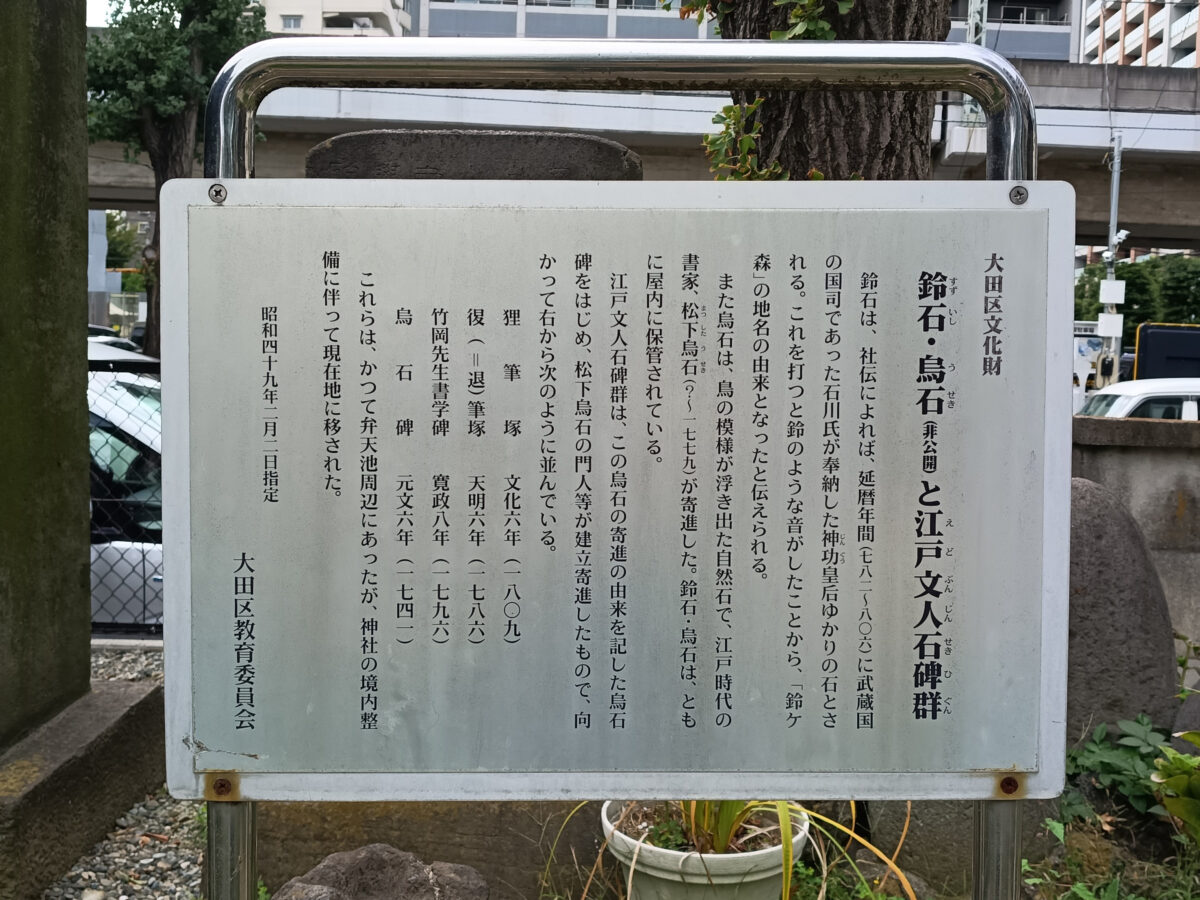 鈴石と烏石の説明は神社の境内にありました大田区教育委員会の掲示板を参照しました。