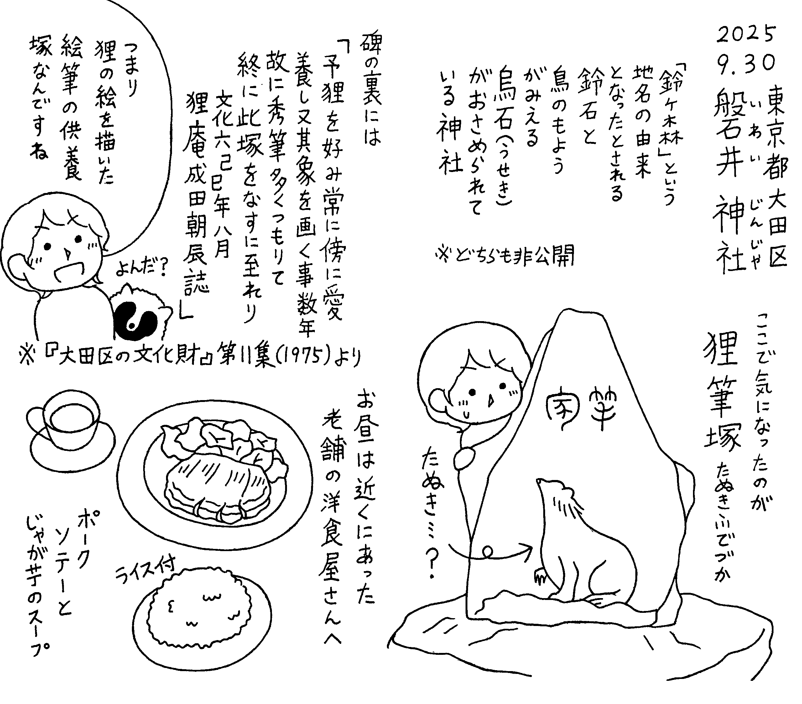 本日のメモ 東京都大田区 磐井神社の狸筆塚
