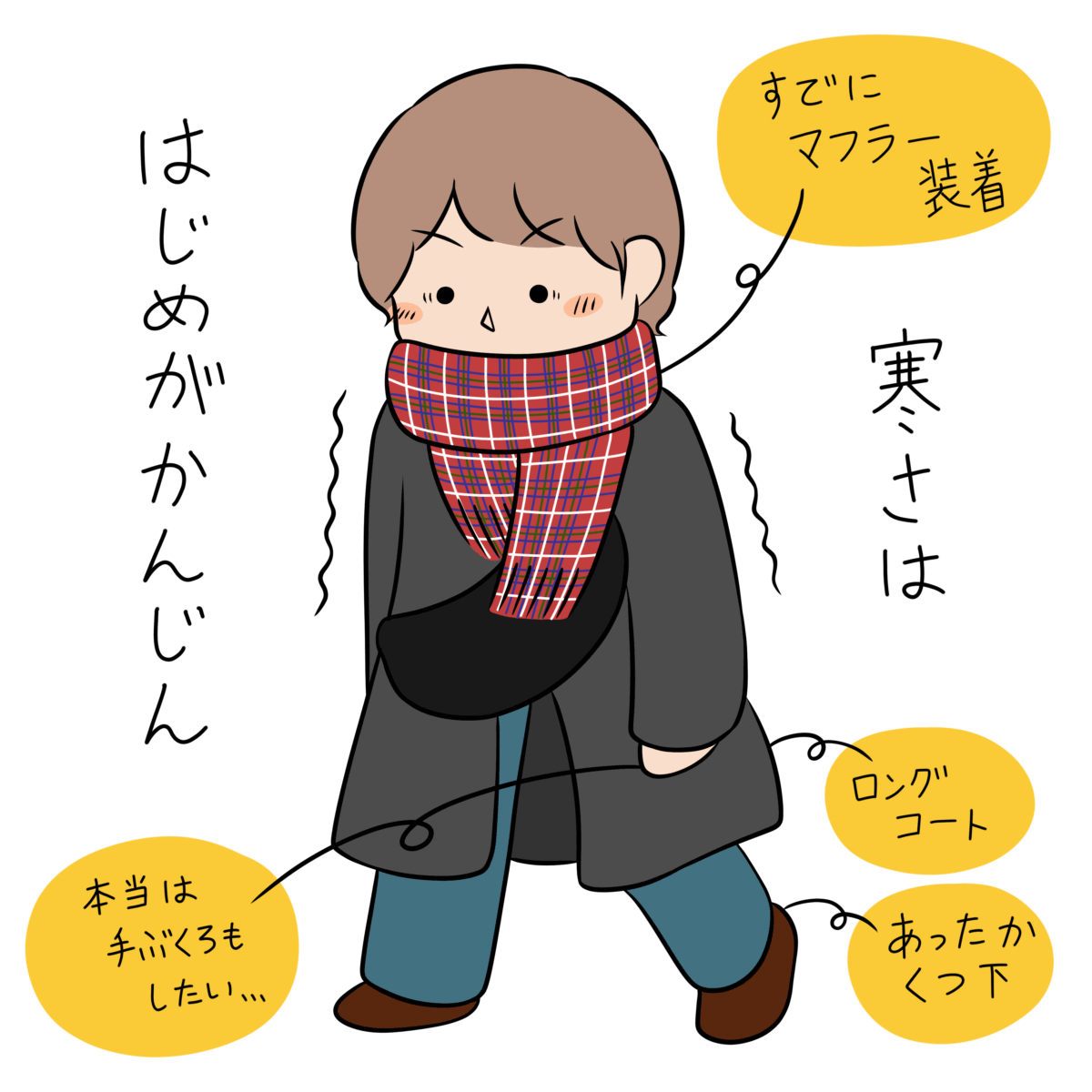 今のうちにしっかりとコートやマフラーで多少周りよりも着ぶくれしているのですが