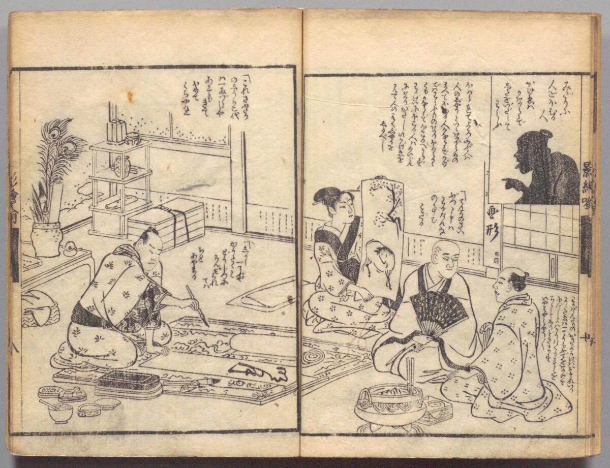 本書は江戸時代後期の戯作者、絵師の山東京伝(さんとう きょうでん)が文章を手がけ、同じく江戸時代後期の浮世絵師、鳥居清長(とりい きよなが)が絵を描いたものです。