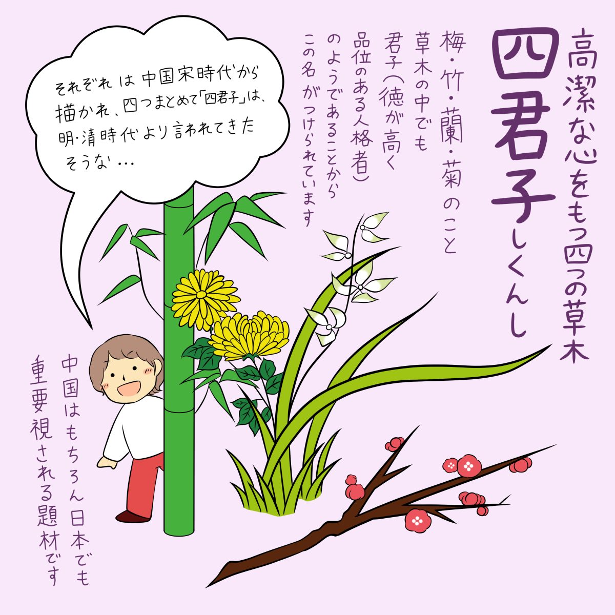 当時の日本においても、梅・竹・蘭・菊のモチーフや「四君子」の考え方が広く定着していったのです。