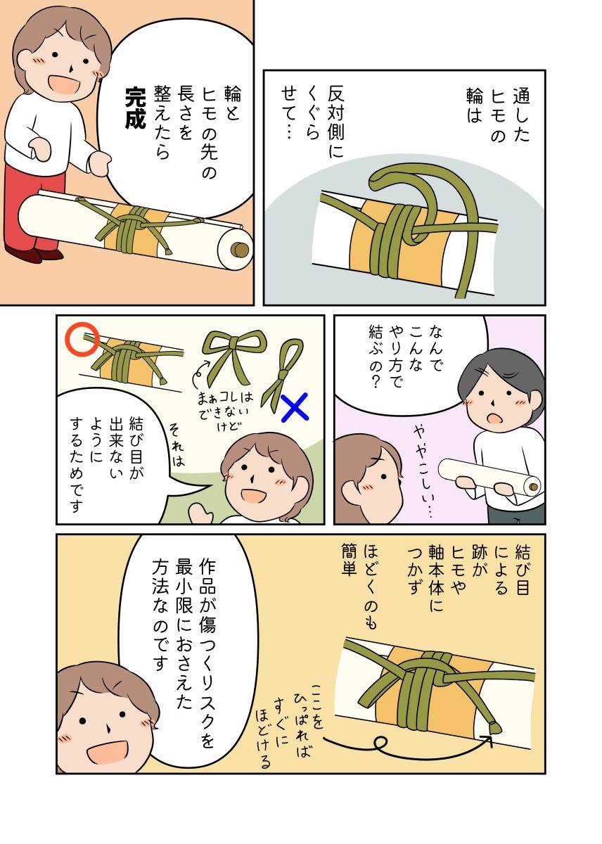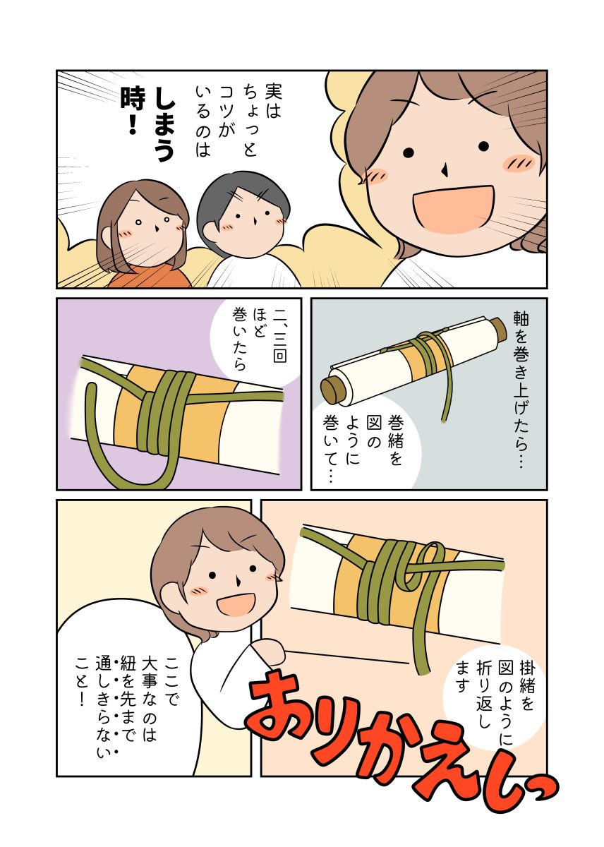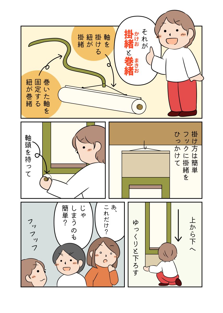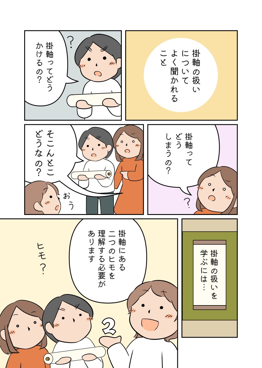 掛軸の扱い方について、友人や周りから「解説マンガにして欲しい!」との声があったので、マンガにしてみました。